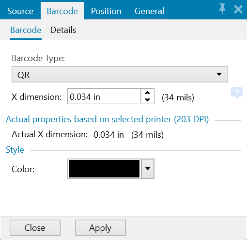 - Select the type of code to be QR for use with the Zebra Scanner.